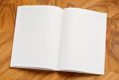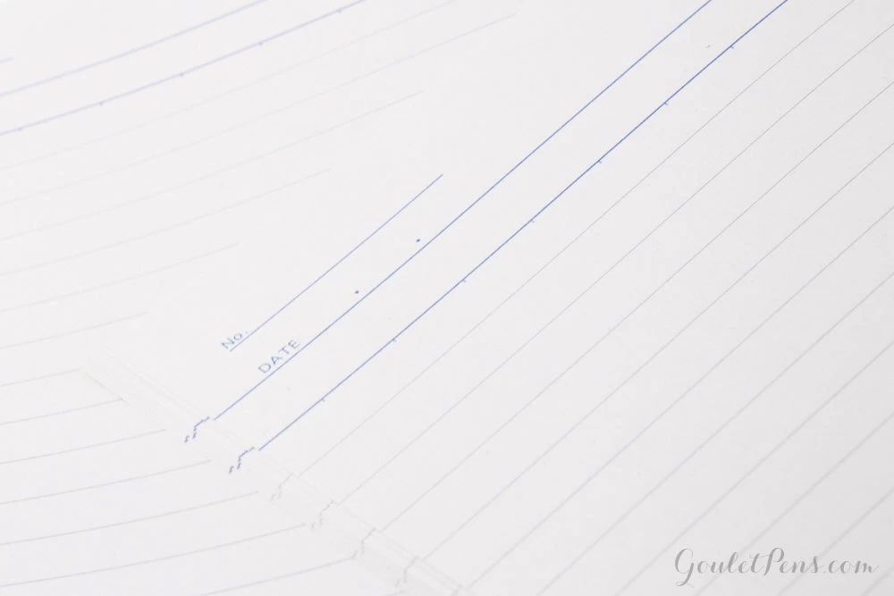 This large-sized notebook features 100 sheets (200 pages) of white super-smooth ruled paper. Each sheet has 30 lines, spaced 7mm apart.