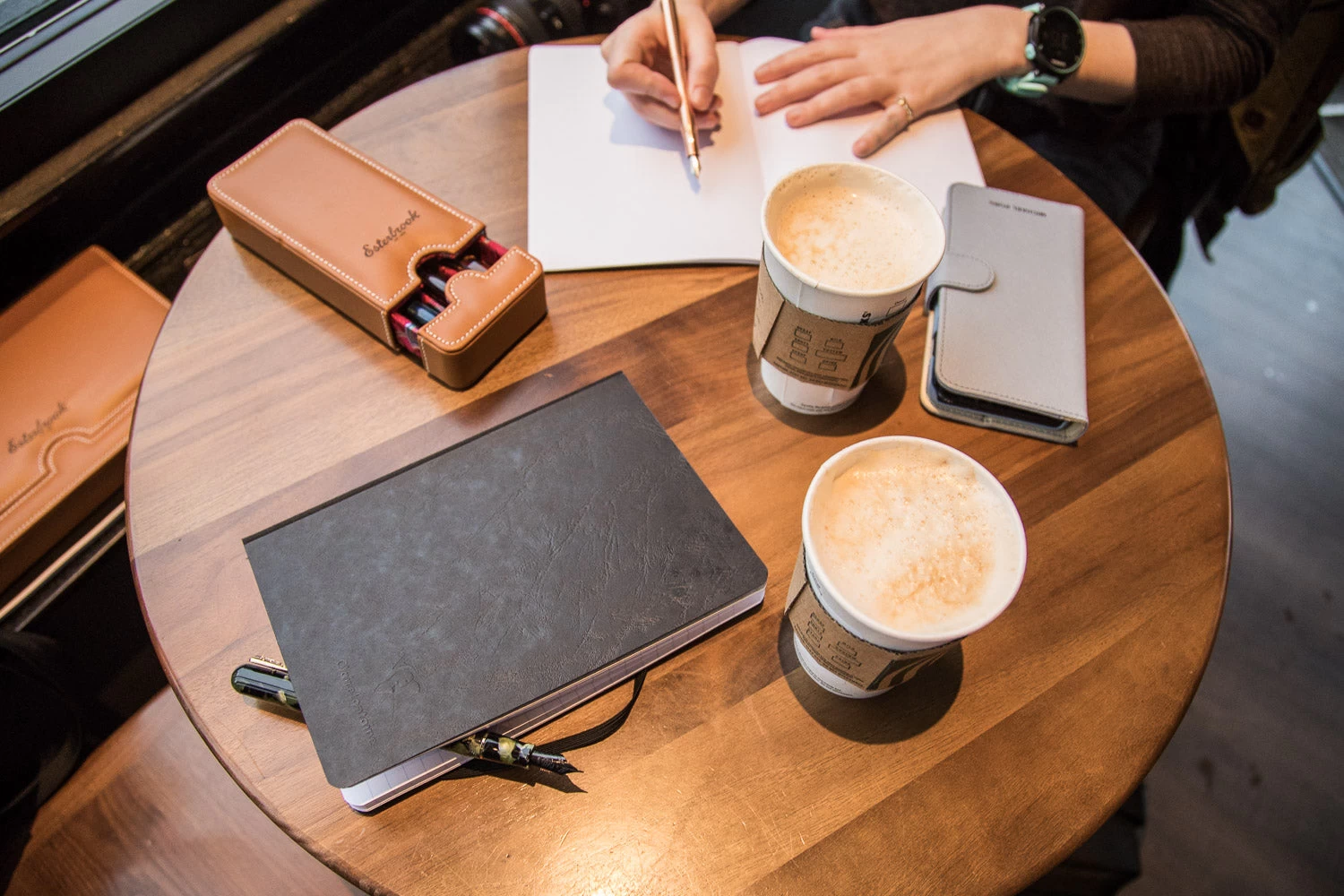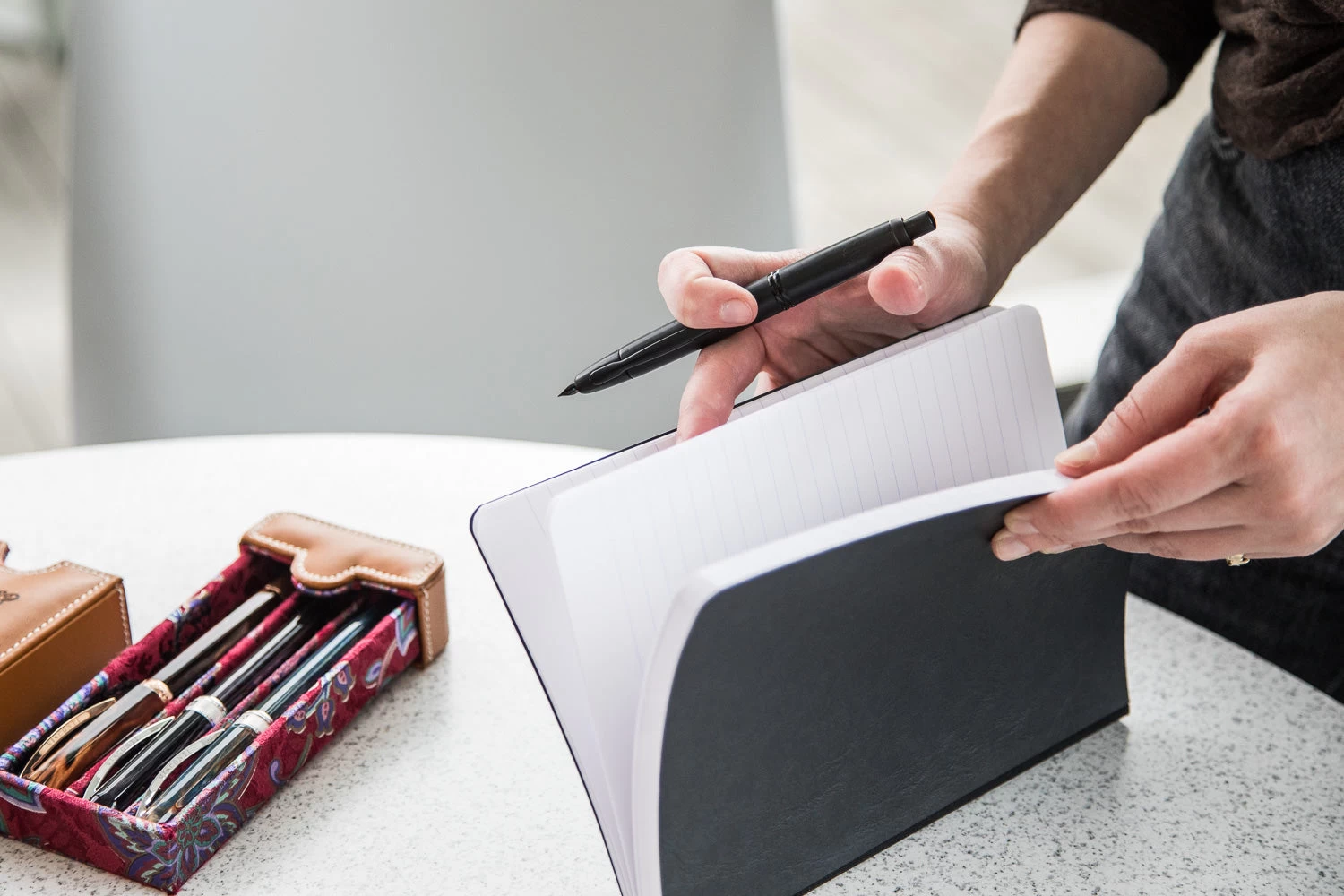 A perfect satin finish for maximum smoothness in writing. This A5-sized black notebook features 96 sheets (192 pages) of white 90g Clairefontaine ruled paper, with cloth binding matching the cover. Lines are spaced 8mm apart. An elastic strap helps to keep your notebook closed when not in use.