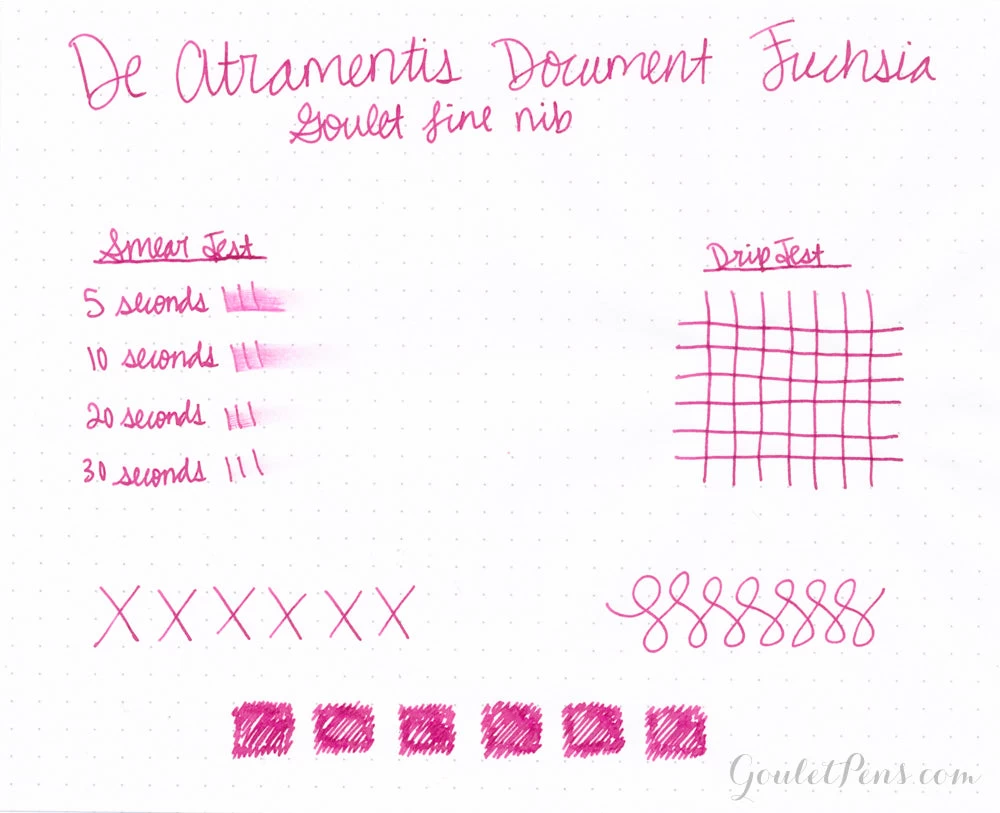 De Atramentis fountain pen inks are exclusively handmade in Germany by Dr. Franz-Josef Jansen, and come in a 45ml glass bottle. This fuchsia pink ink is part of the Document series and is permanent and waterproof. All of the inks in the Document series can be mixed together to create a unique waterproof color. Great for sketching with fountain pens!