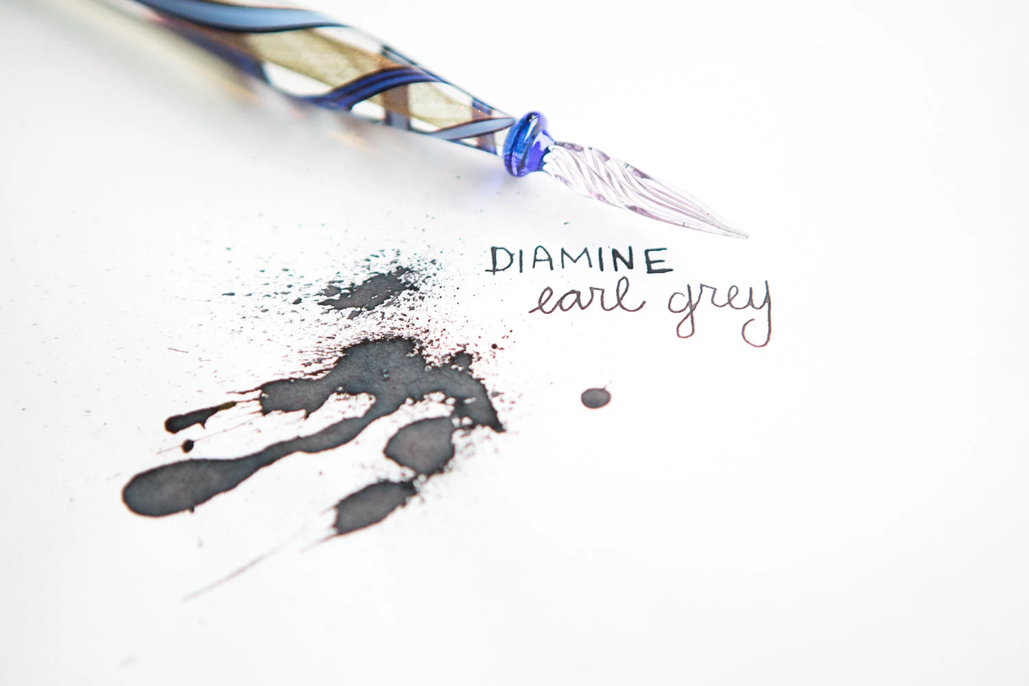 80ml glass bottle of Diamine Earl Grey fountain pen ink. This color was chosen by members of the /r/fountainpens reddit subcommunity.
