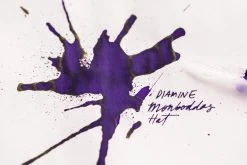 30ml plastic bottle of Diamine Monboddo’s Hat fountain pen ink. A high sheening purple, this color was designed in collaboration with the Fountain Pens UK Facebook group and is now a part of the regular line.