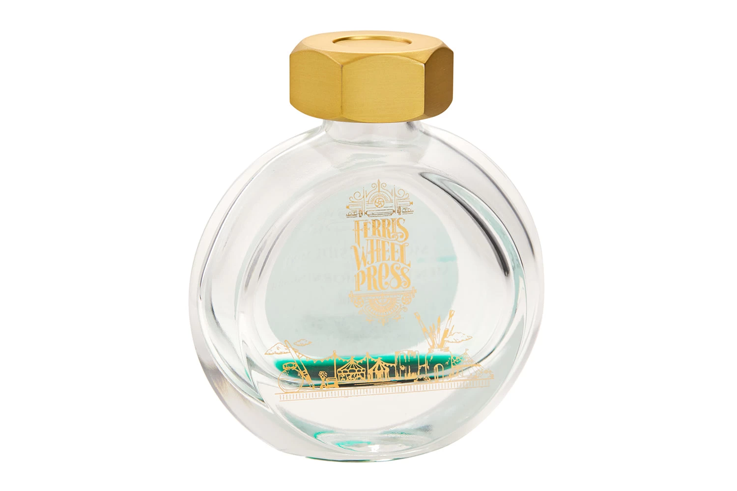 Empty 38ml Ferris Wheel Press glass bottle, not cleaned. We suggest using water (and ammonia or bleach if necessary) to give the bottle a thorough cleaning.