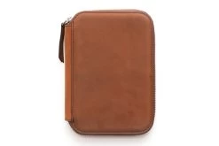 Crafted from soft and supple full-grain brown leather, this stylish zippered pen pouch lets you bring five pens – plus a spare ink cartridge – to the office, on a hike, or anywhere else your writing needs may take you.