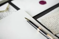 This A5-sized stationery tablet of G. Lalo Vergé de France contains 50 removable sheets of blank 100g laid ivory paper.