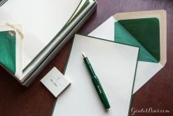This A5-sized stationery tablet of G. Lalo Vergé de France contains 50 removable sheets of blank 100g laid ivory paper.