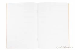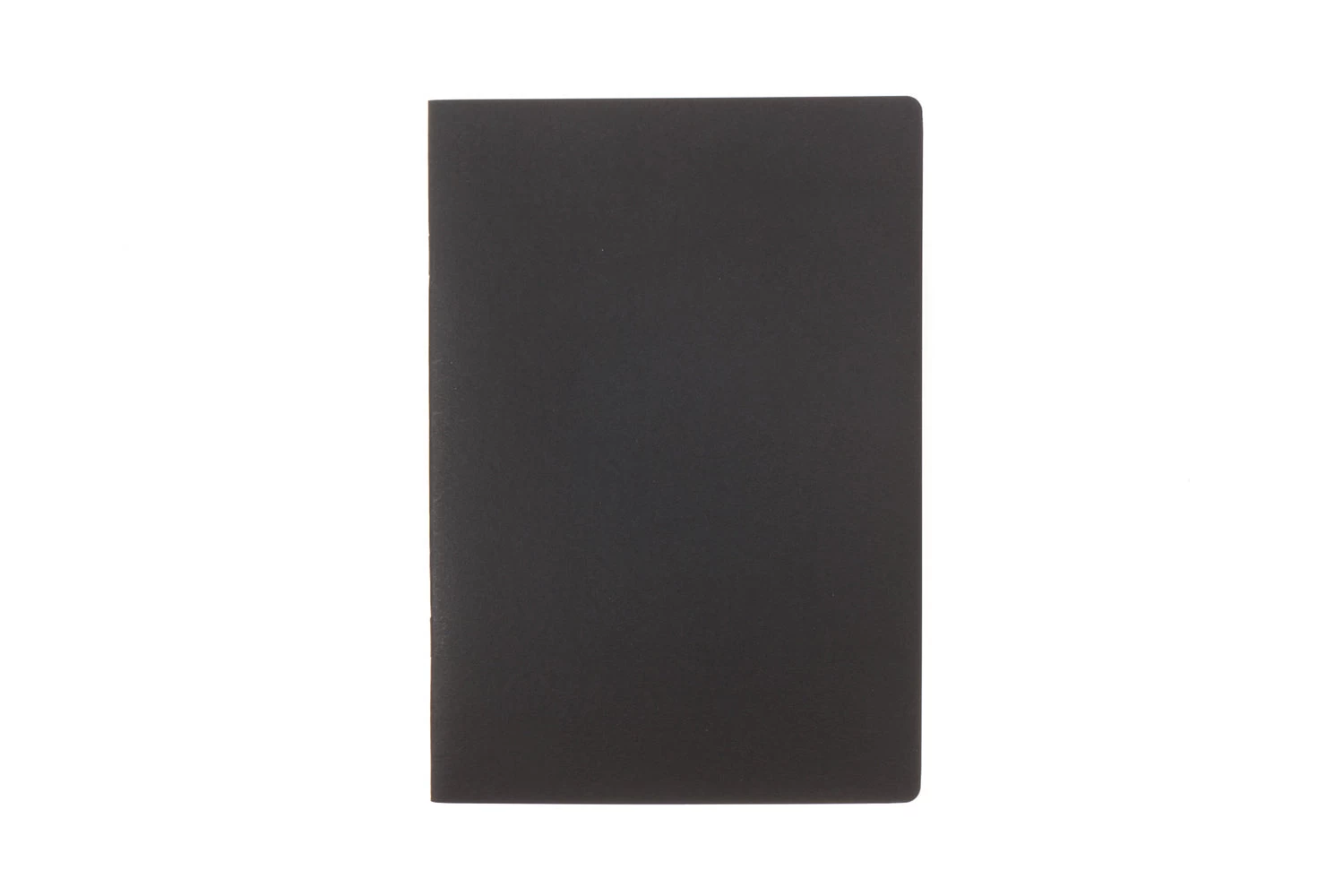A Goulet Pens exclusive! This side stapled notebook features 32 sheets (64 pages) of white 68gsm fountain pen friendly 7mm lined Tomoe River paper, a graphite black 150g kraft paper cover printed with soy ink, rounded corners, and measures 14.8cm x 21cm (approximately 5.83in x 8.27in, or standard A5 size).