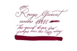 This 30ml glass bottle of Herbin Rouge Grenat red fountain pen ink is elegantly labeled and has an integrated pen rest. Herbin ink is non-toxic and pH neutral, water based, flows smoothly, and uses all natural dyes.