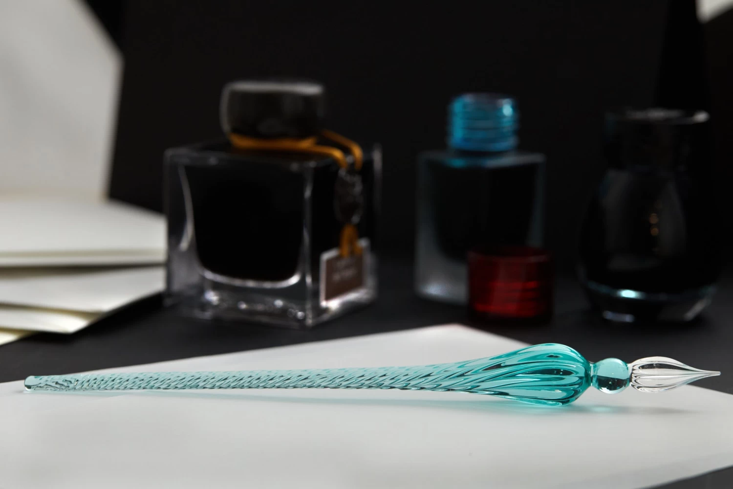 This hand-blown Herbin round glass dip pen is made in the tradition of 16th-century Venice. Each pen is an individual work of art. The fine glass tips are twisted in a light spiral to hold the maximum amount of ink. Glass dip pens are great for both fountain pen ink or calligraphy/dip pen ink!