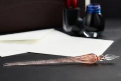 This hand-blown Herbin round glass dip pen is made in the tradition of 16th-century Venice. Each pen is an individual work of art. The fine glass tips are twisted in a light spiral to hold the maximum amount of ink. Glass dip pens are great for both fountain pen ink or calligraphy/dip pen ink!