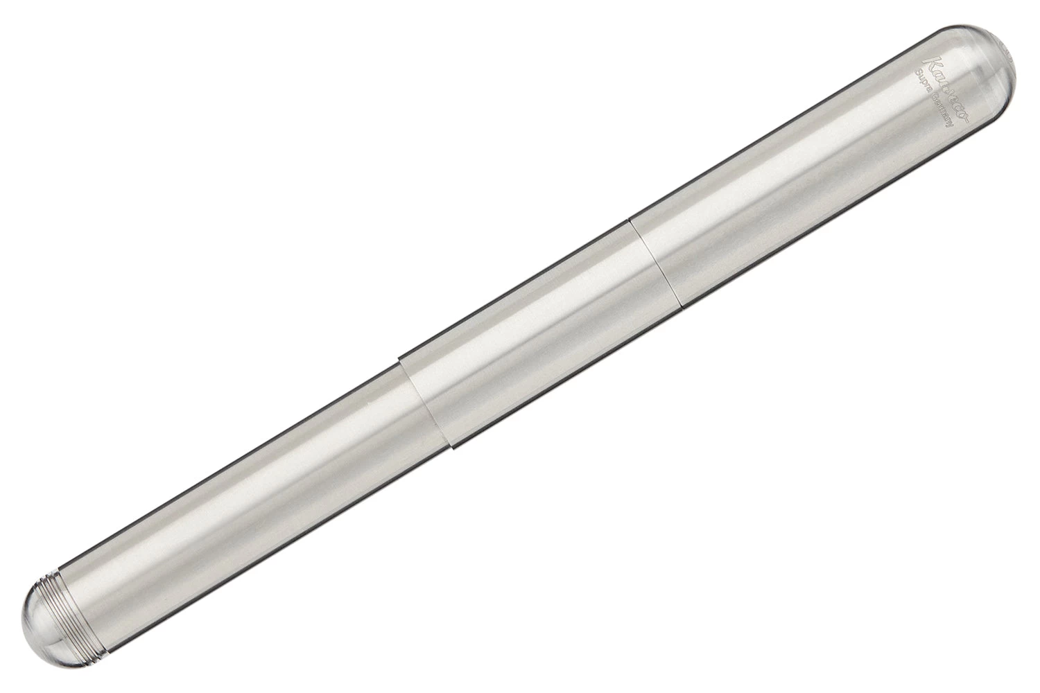 The Kaweco Supra fountain pen is the big brother of the Liliput and a quick-change artist. A connector piece transforms this pen from a cartridge-only pocket pen to a full-sized converter-accepting pen. The fountain pen’s weight and length can be adjusted to meet the individual needs of its user. The minimalistic design is reminiscent of Bauhaus and Braun.