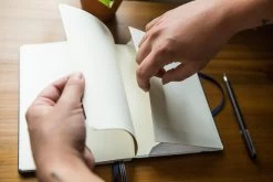 This pastel mint green medium A5 notebook is equally suited for the desk and for use on the move. It opens flat, and stays closed with an elastic band. Contains 144 pages of 80g ivory paper, and runs from January 2024 through December 2024.