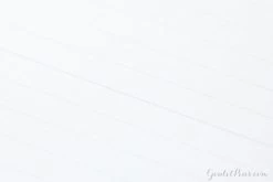 Made in Japan, this B5-sized notebook features 80 sheets of white acid-free 80gsm lined paper. The black double wire side spiral binding matches the black plastic cover. The notebook features 7mm line spacing with 30 rows per sheet (with a bold line every 10 rows), and every page is micro-perforated. Each sheet contains a blank margin at the top with a space for the date and title.