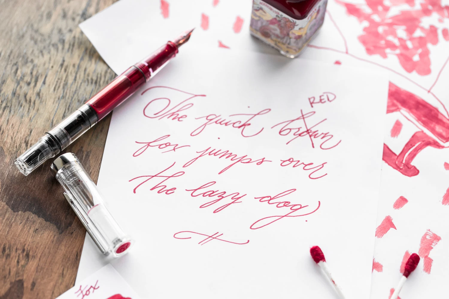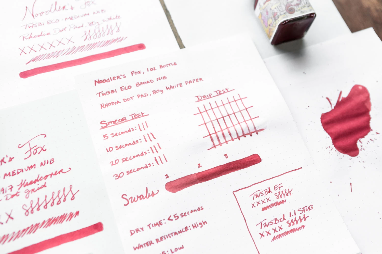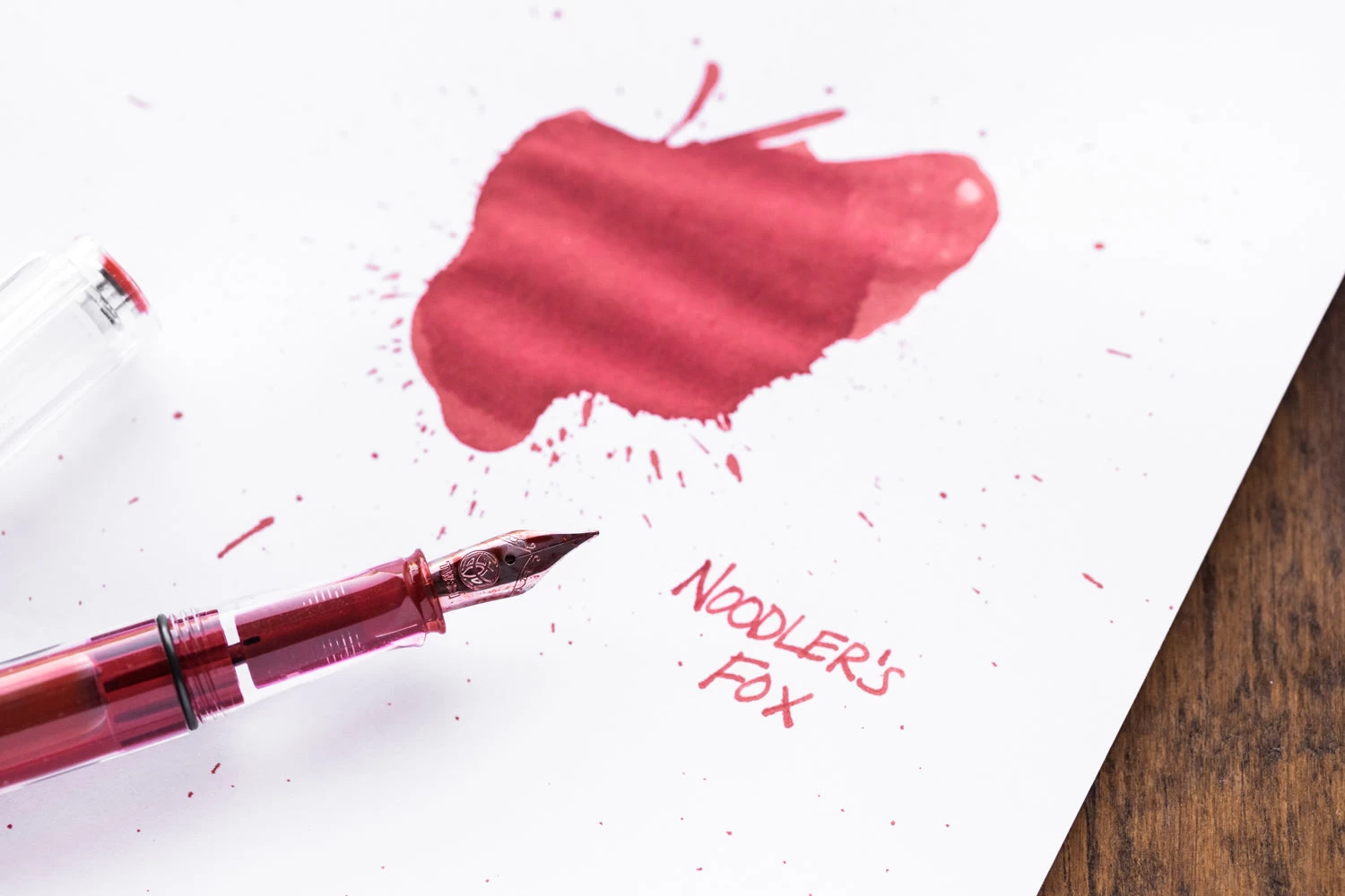 1oz (30ml) glass bottle of Noodler’s Fox red fountain pen ink. Noodler’s inks are handcrafted, so there may be slight color variations from batch to batch.