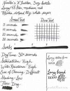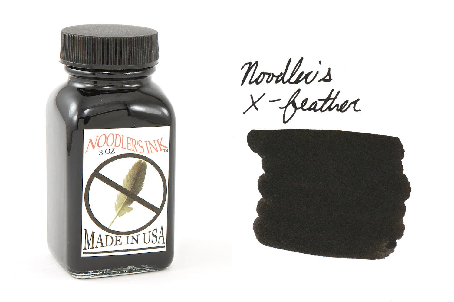 3oz (90ml) glass bottle of Noodler’s X-Feather Black fountain pen ink. Noodler’s inks are handcrafted, so there may be slight color variations from batch to batch.