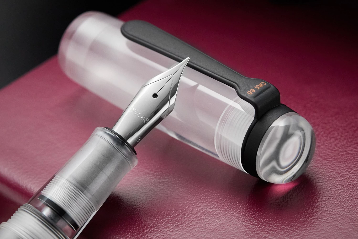 The Opus 88 OMAR fountain pen is a large eyedropper-filled pen with a piston operated shut-off valve.