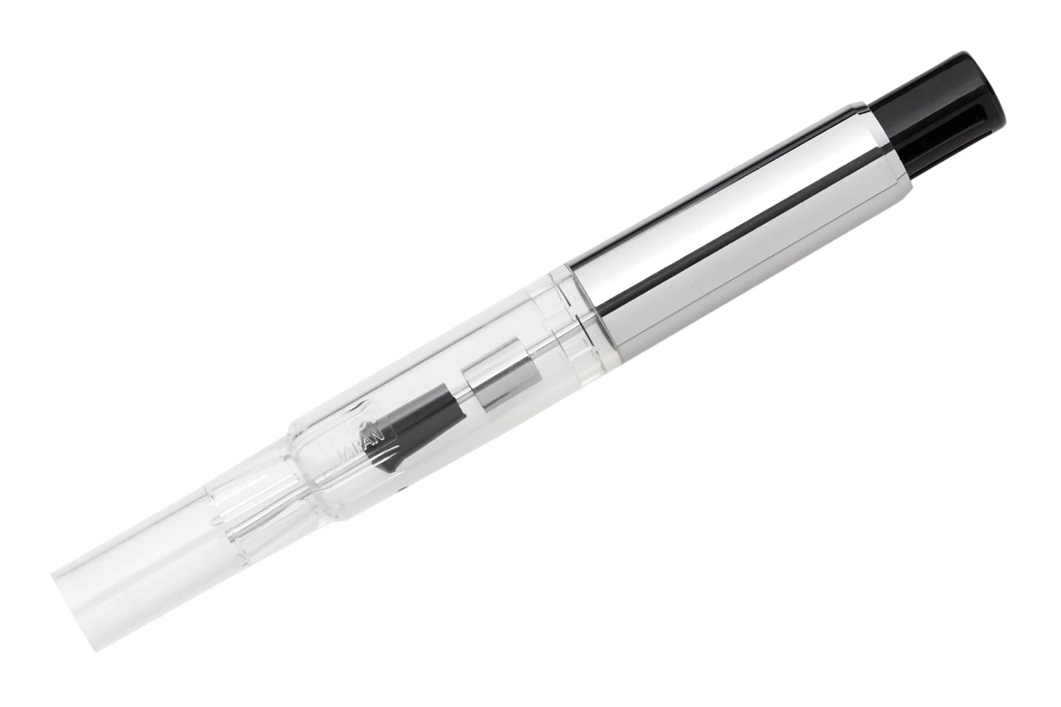 This push-button converter fits many larger Pilot fountain pens including the Custom 74, Explorer, Justus 95, Kakuno, Metal Falcon, and many Namiki fountain pens including the Chinkin, Nippon Art, Yukari, and Yukari Royale series.