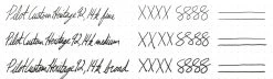 The Pilot Custom Heritage 92 fountain pen uses a rotating suction mechanism (piston-fill). The clear demonstrator allows you to see both the color and the amount of the remaining ink in the barrel, and it is complemented by silver trim. The rhodium-plated 14k gold nib maximizes the functionality and smooth writing of a fountain pen, achieving the strength of character nuance. Each Custom Heritage 92 pen is merchandised in an elegant Pilot gift box.