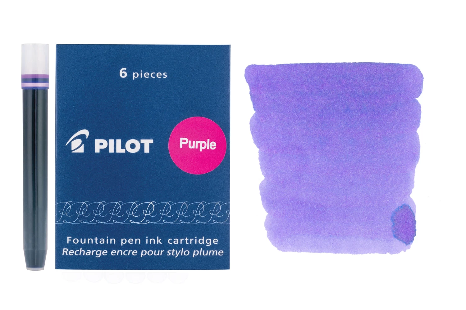 Boxed set of 6 purple fountain pen ink cartridges. These cartridges fit all Pilot and Namiki fountain pens that accept cartridges.