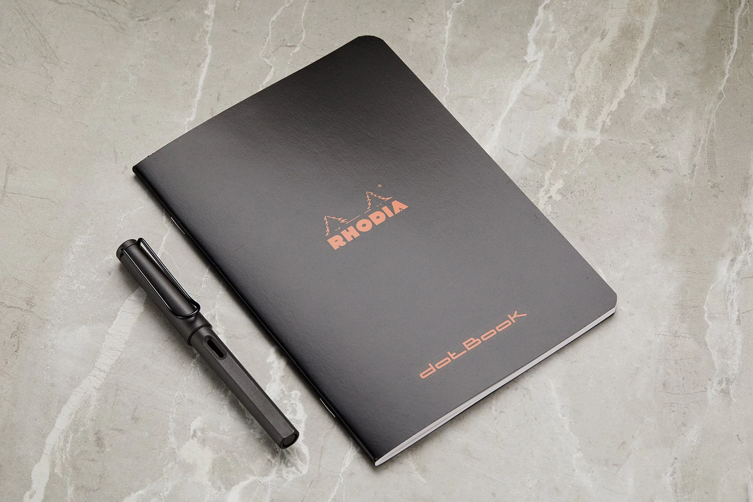 This A5-sized black side-stapled Rhodia notebook features 48 sheets (96 pages) of extra white 80g acid-free, pH neutral 5mm dot grid paper and a coated and waterproof cover. An alternative to traditional lines and boxes, the dot grid is a favorite for graphic designers, architects, artists and everyone looking for a subtle grid. Perfect for notations and sketches, the dot grid offers great results with scanners and photocopies.