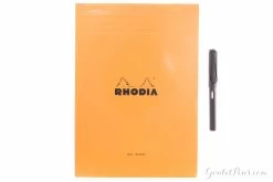 This A4-sized orange Rhodia notepad features 80 sheets of extra white 80g acid-free, pH neutral blank paper. Each sheet is microperforated at the top for easy and clean removal. The top stapled cover folds back cleanly, and there is a hard cardboard back for writing support. These economical pads are a favorite of artists, designers, writers, and notebook fans for notes, sketching, and hand drafting. People love them for their grids, smooth paper, and iconic cover.