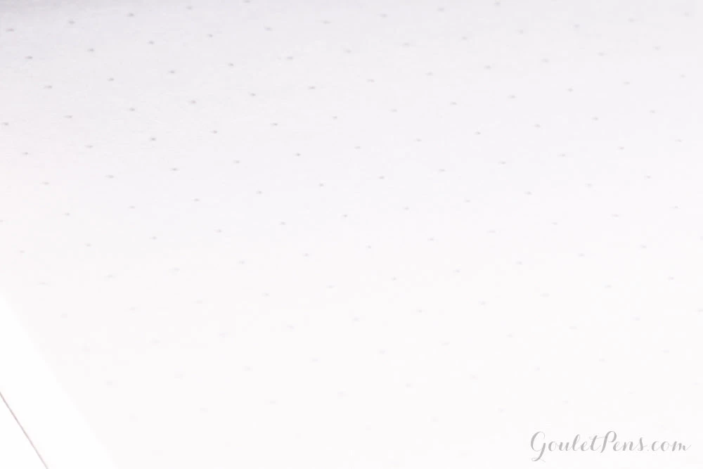 This A4-sized orange Rhodia notepad features 80 sheets of extra white 80g acid-free, pH neutral 5mm dot grid paper. Each sheet is microperforated at the top for easy and clean removal. The top stapled cover folds back cleanly, and there is a hard cardboard back for writing support. These economical pads are a favorite of artists, designers, writers, and notebook fans for notes, sketching, and hand drafting. People love them for their grids, smooth paper, and iconic cover.