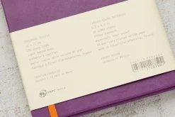 Known as the “Webbie”, the Rhodia Webnotebook is the choice for fountain pen users and everyday note taking. This A5-sized notebook has a purple leatherette hard cover. It is filled with 96 sheets (192 pages) of premium 90g ivory Clairefontaine ruled paper. Lines are spaced 7mm apart. Other features include a ribbon marker, an orange elastic closure, an inner pocket for notes and cards, and elegant round corners.