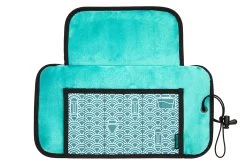 Protect your precious pens from the daily rough-and-tumble with this plush-lined pen. This Rickshaw Bagworks custom pen roll features a beautiful painting by Thales Medeiros of a fountain pen atop Mt. Fuji reprinted on a polyester canvas material, with a super-soft turquoise plush interior. Six generously-sized plush-lined slots accommodate most pens up to 5.8-inches in length. The elastic cord and cord-lock keep your pens snug and safely stored.