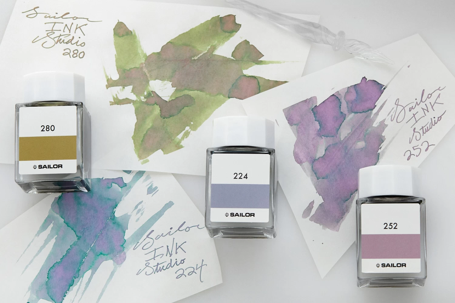 This smooth-flowing water-based dye ink is specifically formulated to be safe for all fountain pens. Sailor Ink Studio is a collection of 100 unique colors.
