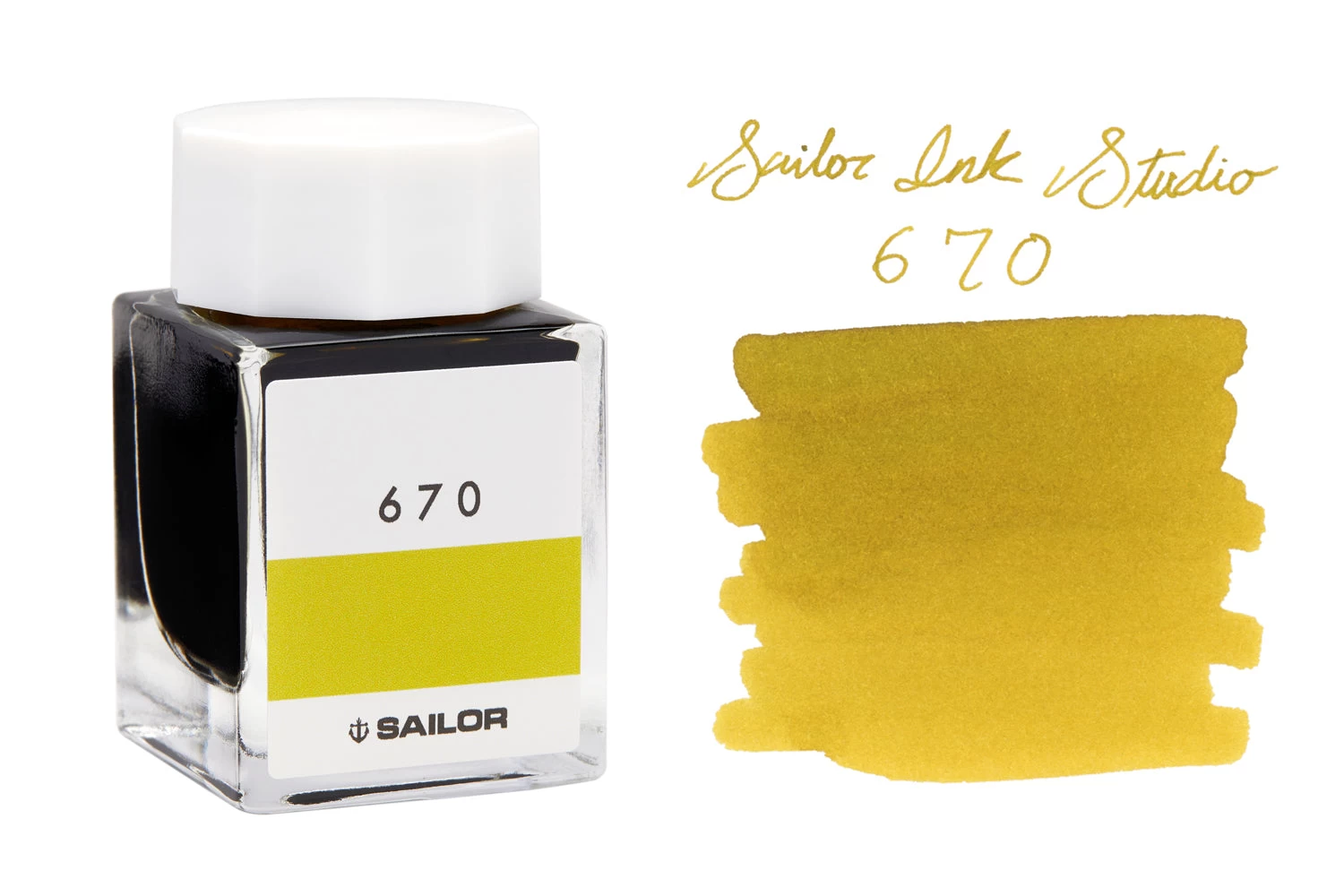 20ml square glass bottle of Sailor Ink Studio 670 yellow fountain pen ink.