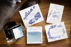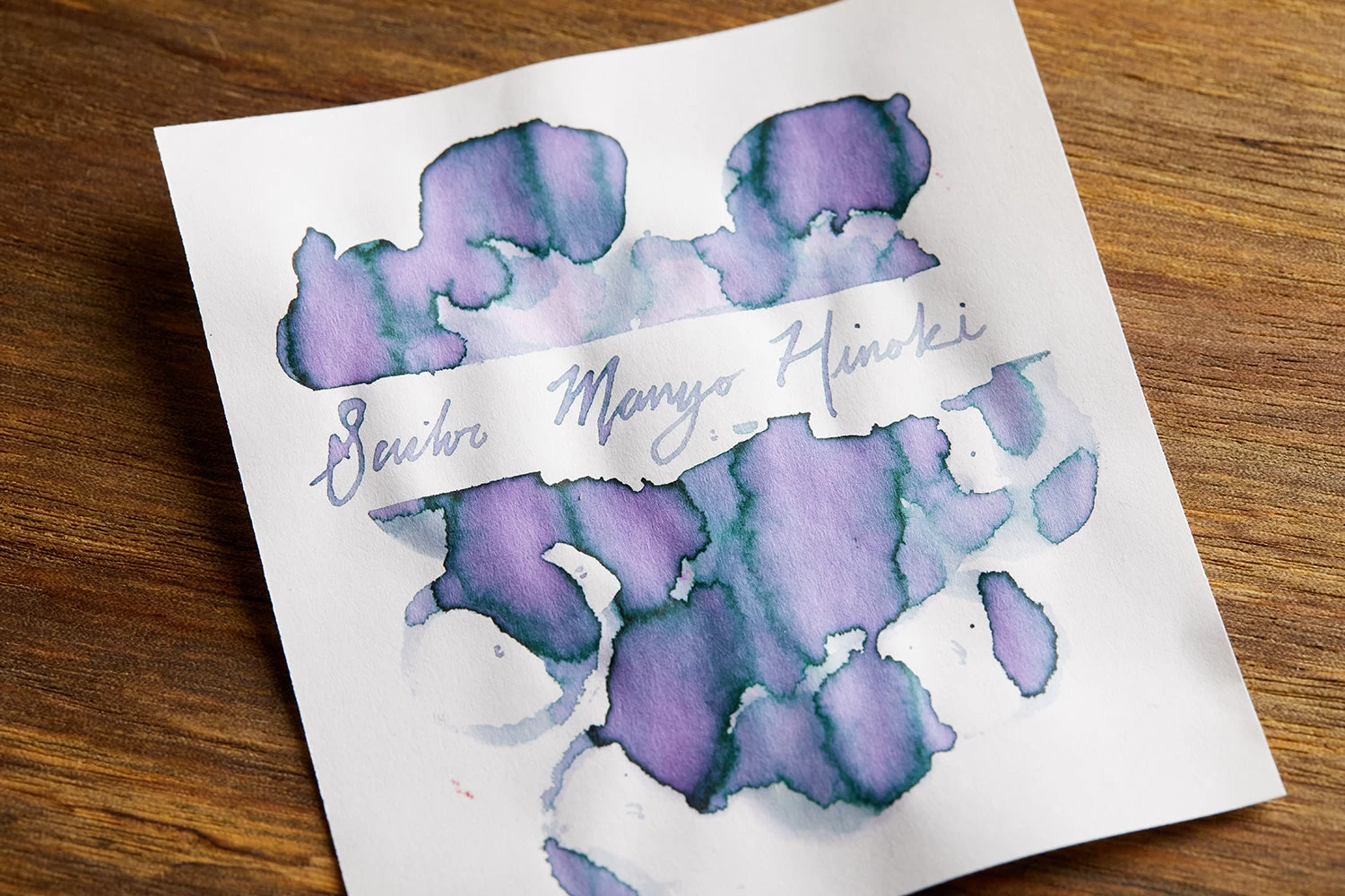 Hinoki is a soft blue-grey that shades out to purple and green. As part of the third release in the Manyo ink series, Hinoki is a dual shading ink, which means it shades different colors than its base colors when pooling into areas of high and low concentration on the paper. Dual shading inks are really fascinating.
