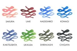 Flowers have always been a popular poetic subject dating back to ancient Japanese history. This is the theme for Sailor’s Manyo bottled ink series. Based on popular flowers frequently mentioned in Japanese โManyoshuโ โ an anthology of compiled ancient poems โ Sailor has chosen eight dye-based ink colors to best represent this vibrant palette range.