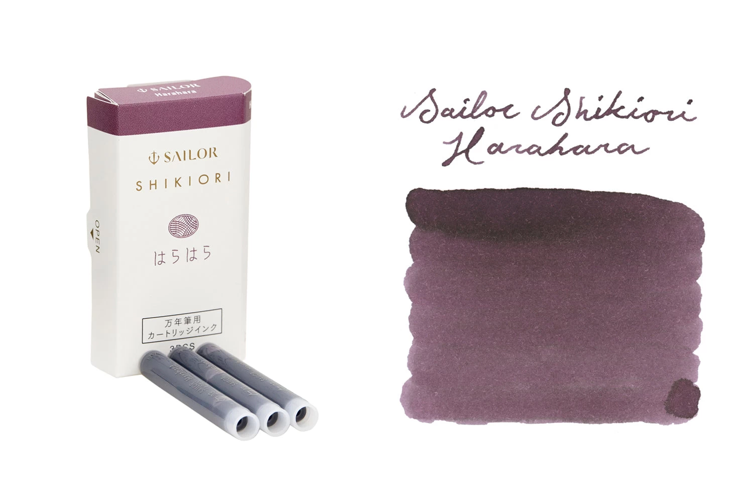 Boxed set of 3 Sailor Shikiori Harahara fountain pen ink cartridges.