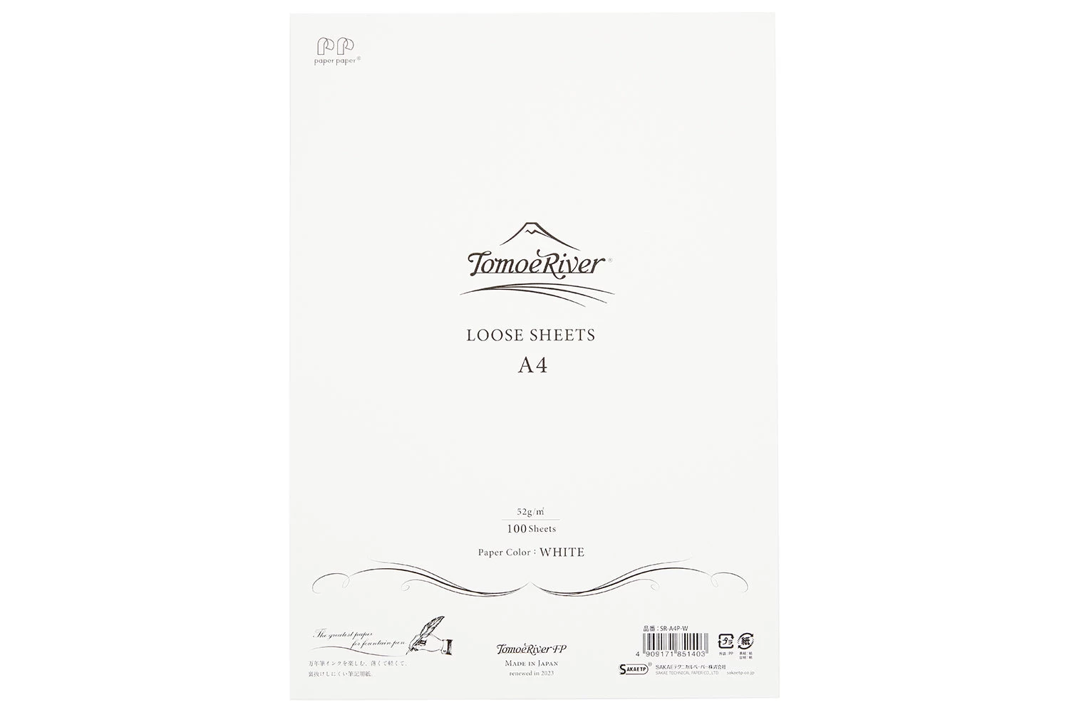 Imported from Japan, Tomoe River paper is known for being incredibly thin (52gsm!) yet incredibly fountain pen friendly. This product includes 100 loose sheets of blank white A4-sized paper, which is acid-free and pH neutral.