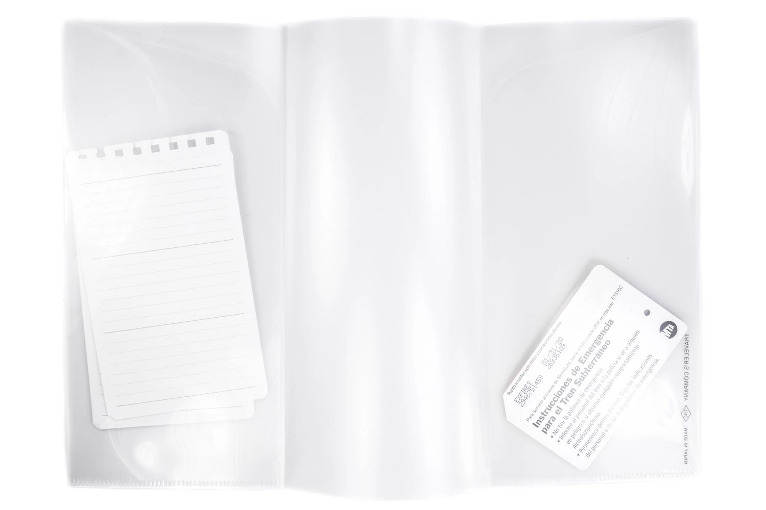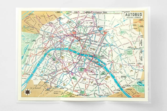 This file stores A4 sized paper folded in three. It’s made to neatly fold and store A4 size papers and take them with you. Use it for anything you need to take with you, from ticket printouts and hotel vouchers to schedules and map copies, whether traveling or just every day at the office. Fold it in three and keep it in the leather cover of regular TRAVELER’S notebook.
