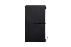 This is the starter’s kit of the regular-sized Traveler’s Notebook. It comes in a package which contains a black cowhide leather cover, a blank notebook, a cotton case, and a spare closure rubber band (of a different color). The simple and rustic texture is self-assertive in an unobtrusive way.