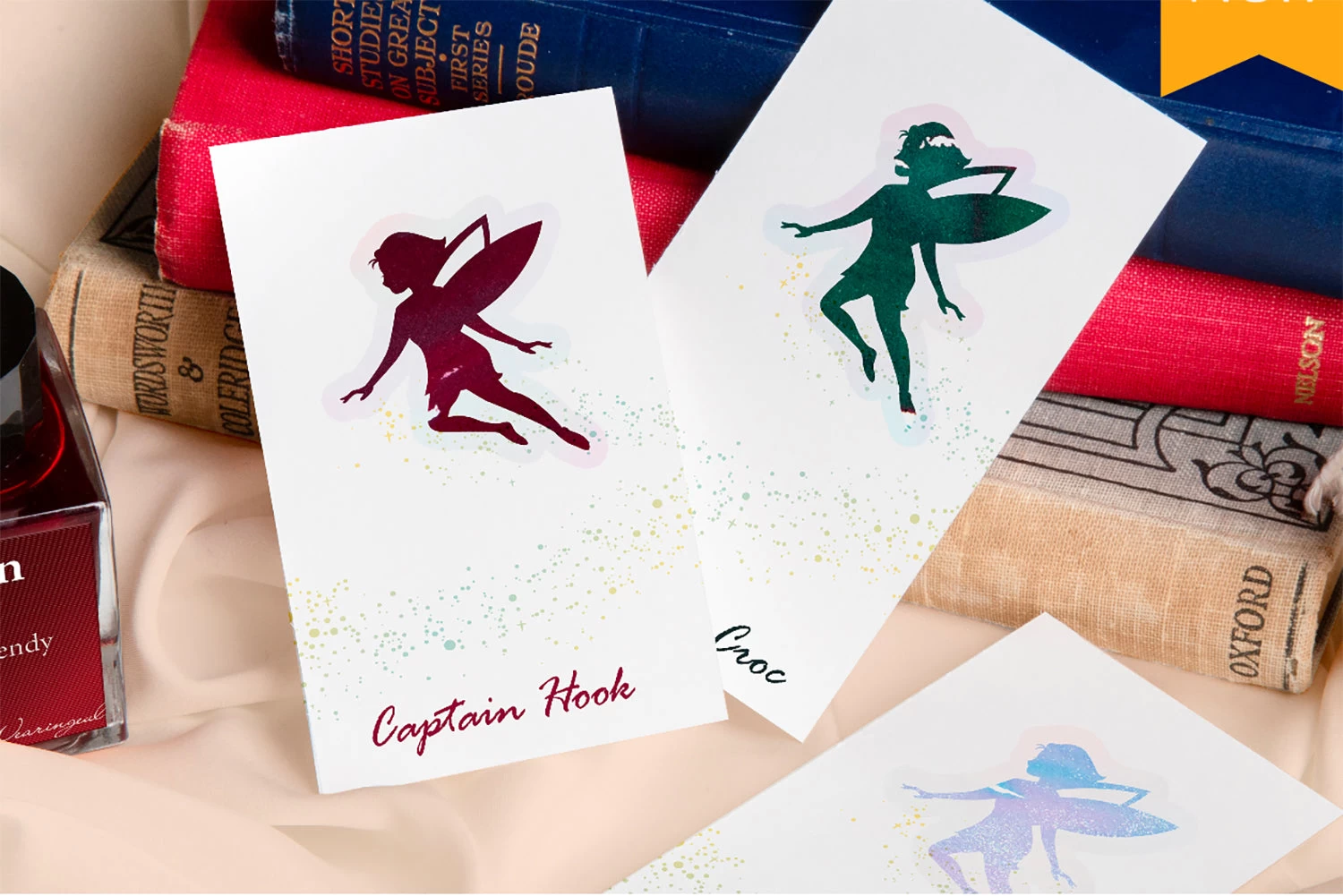The paper is Wearingeul’s Impressions paper with a weight of 200g/m². Each individual card depicts the Tinker Bell shape. 50 sheets are included, and each card measures 90 X 50mm.